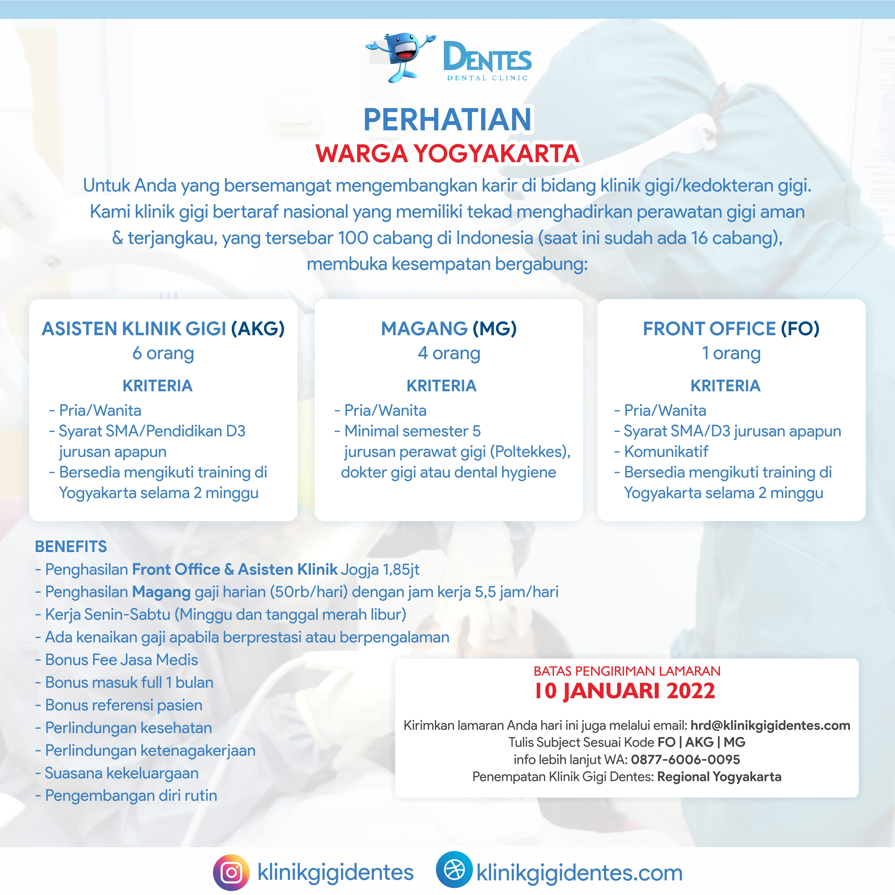 Lowongan Kerja Asisten Klinik Gigi Akg Magang Mg Front Office Fo Di Klinik Gigi Dentes Lokerjogja Id